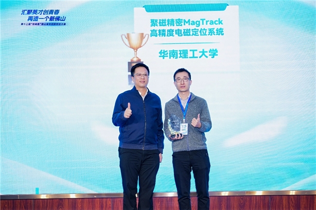 比赛现场,项目团队以“8分钟路演+3分钟答辩”的形式同台竞技,展现出突出的技术创新性与商业应用潜力。这些项目高度契合佛山制造业基础与转型需求,受到现场投资机构及企业的广泛关注。评审团从技术独创性、市场前景、团队能力及产业协同价值等维度对项目进行了综合评判。经过激烈角逐,最终,《聚磁精密MagTrack高精度电磁定位系统》项目获得一等奖,《铝电解电容器阳极箔的绿色制备技术》项目、《AI+催化材料平台》项目获得二等奖,《面向新能源与热管理领域的有色金属红外-蓝光复合激光焊产业化应用》项目、《微胶囊香氛剂的关键技术研究及产业化》项目、《新型转子泵式挤出机-塑料产业环保改革的引领者》项目获得三等奖。