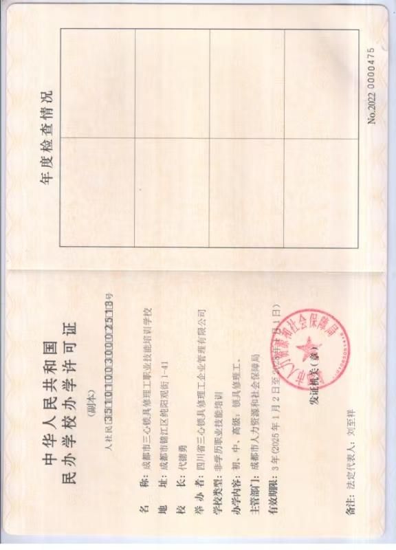 成都市三心锁具修理工职业技能培训学校位于成都市锦江区,其实操练习锁具配置基于30余年行业实战经验的技术沉淀。学校持有民办学校办学许可证,校长刘至祥担任成都市锁具行业协会会长,教师团队均持有开锁教师资格证及高级技师证。实训设备包含多项自主研发**设备,练习锁具库按照开锁高级综合班、电子班、智能家居班三类课程体系分类配置,确保学员在不同技术方向上获得对应的实操训练资源。